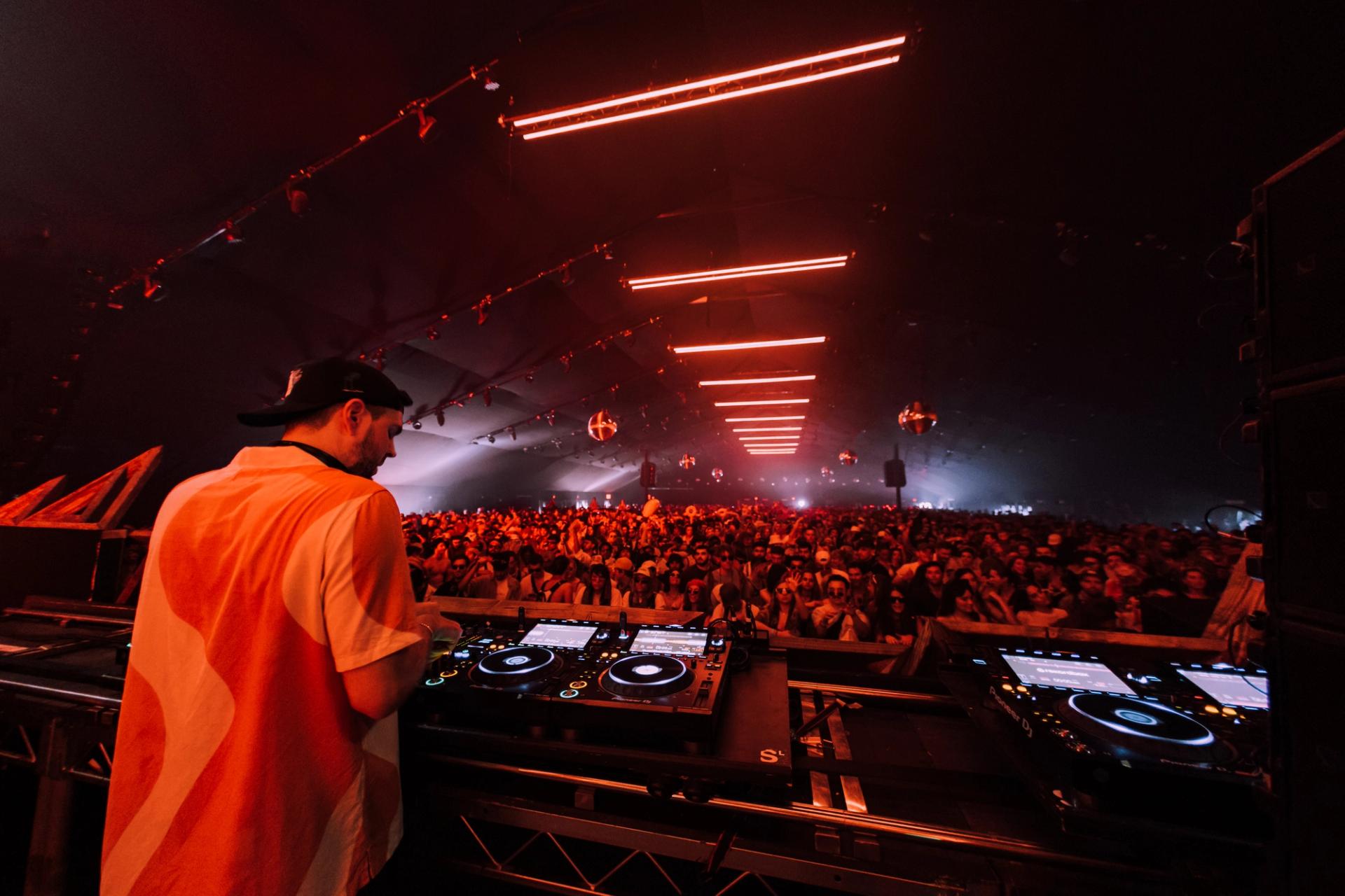 He says he tried to gauge how many people would attend based on pictures and video from previous years—it could be packed or bring as little as 150 festival goers. He B-lined to the stage before the festival opened and taking in its immense size, was worried how it would ever look full so early in the day. He returned ten minutes before he hit the decks while Chris Stussy played to around 4,000 people, making him believe it would be an “insane” performance. Even more attendees packed in while he spun, capping the tent at 6,000 people.