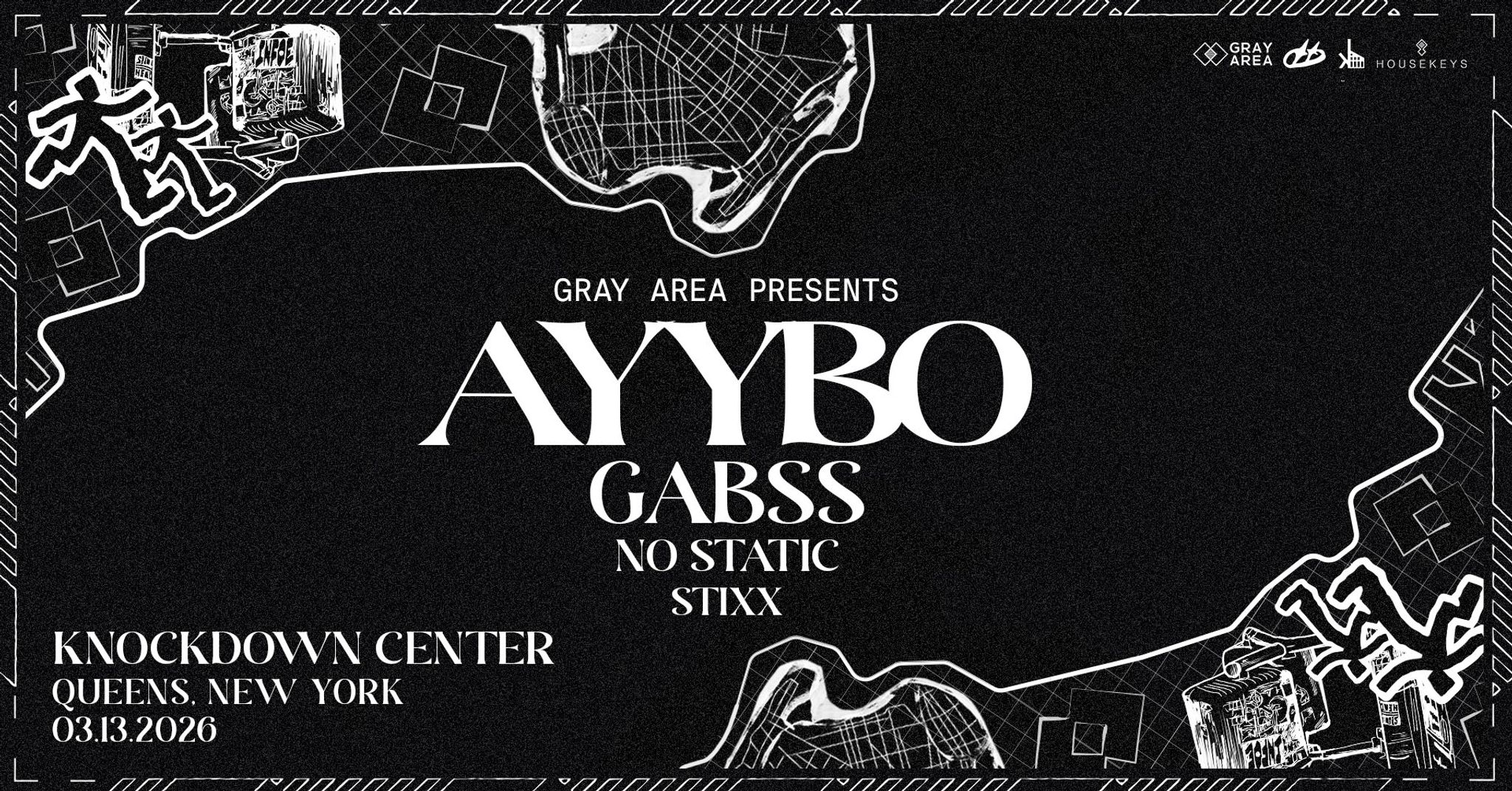 Set inside a 150-year-old former door factory, Knockdown Center is one of New York’s most iconic venues—known for its towering ceilings, massive open space, and sound that hits hard from every corner. With a stacked lineup, booming speakers, and a crowd that knows what’s up, this one’s going to go off. Don’t miss it.