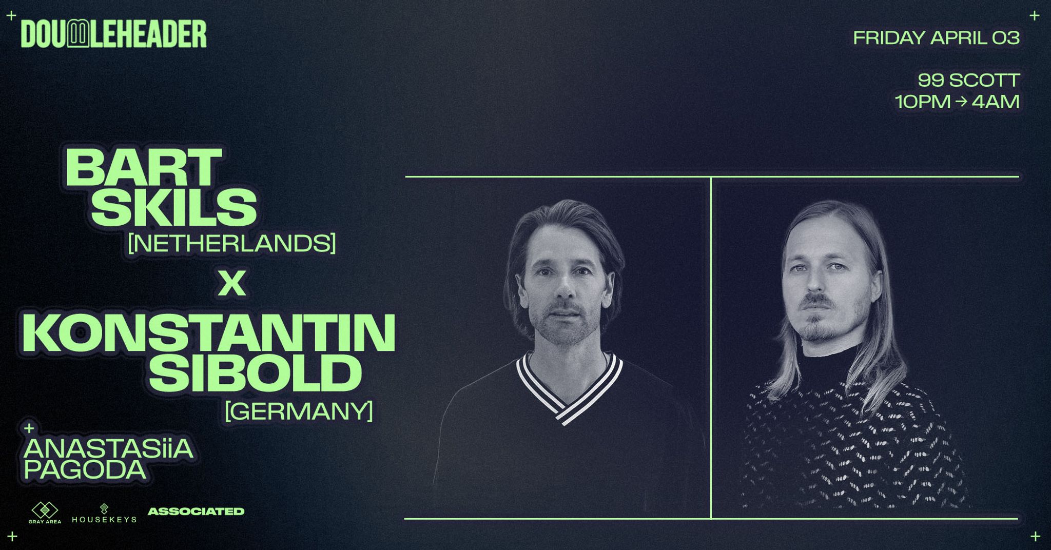 Gray Area presents a heavyweight doubleheader at 99 Scott on Friday, April 3, bringing together two defining forces in modern European techno: Bart Skils and Konstantin Sibold. Also on the bill is Ukranian talent ANASTASiiA and local talent PAGODA.