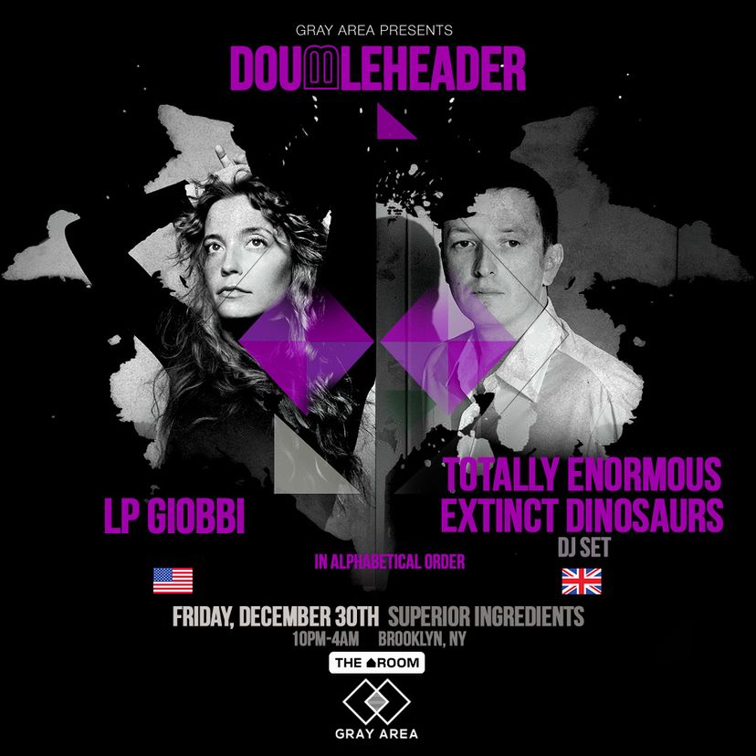 It's a Doubleheader with the incomparable LP Giobbi and Grammy-nominated Totally Enormous Extinct Dinosaurs. What's a Doubleheader, you ask? It's a unique opportunity for two headliners to share the spotlight through three incredible sets. First, LP and TEED will play separately, showcasing their individual styles. Then, they'll join forces for a first-of-its-kind b2b set to close the night. Every dance music fan knows that the art of the b2b is best expressed when two singular artists can fully engage in that intricate dance of communication that creates the most epic and memorable sets. This will undoubtedly be on of those magic moments.