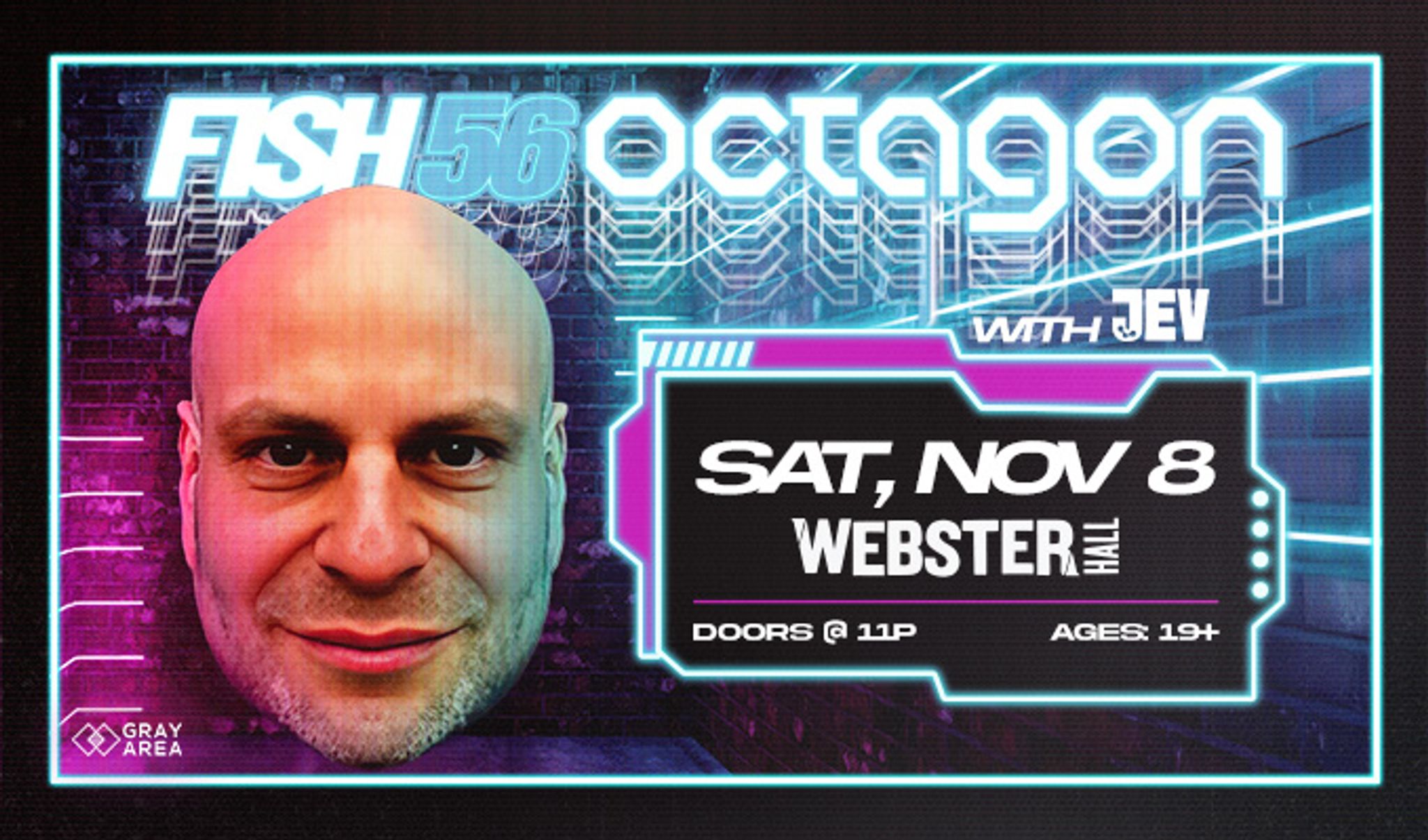 New York loves chaos, and on Saturday, November 8, we’re getting a full serving of it when Fish56Octagon lands at Webster Hall. If you’ve ever found yourself deep in a 2AM scroll watching a bald British man in a dressing gown passionately mix old-school rave records in his kitchen—congratulations, you’re already part of the Fish universe.