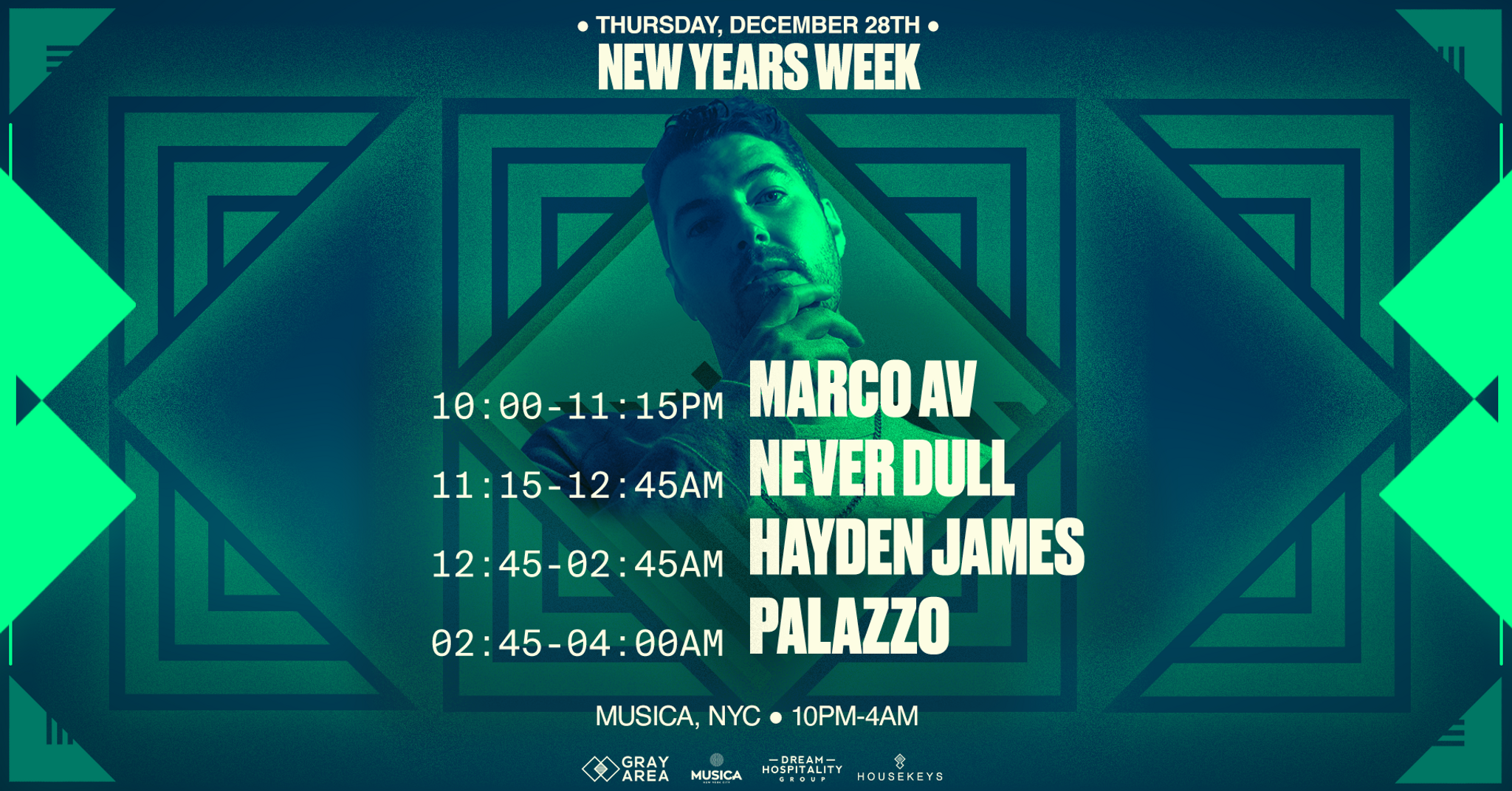 Supporting Hayden will be New York's very own, Marco AV! Consistently performing all over the city, Marco plays frequently at Heaven Can Wait, The Sultan Room, SOHO House, The Water Tower and most notably, Elsewhere supporting DJ Holographic and at Williamsburg Hotel! Playing alongside Hayden displays his growth as he continues to produce his own originals and carve his own lane.