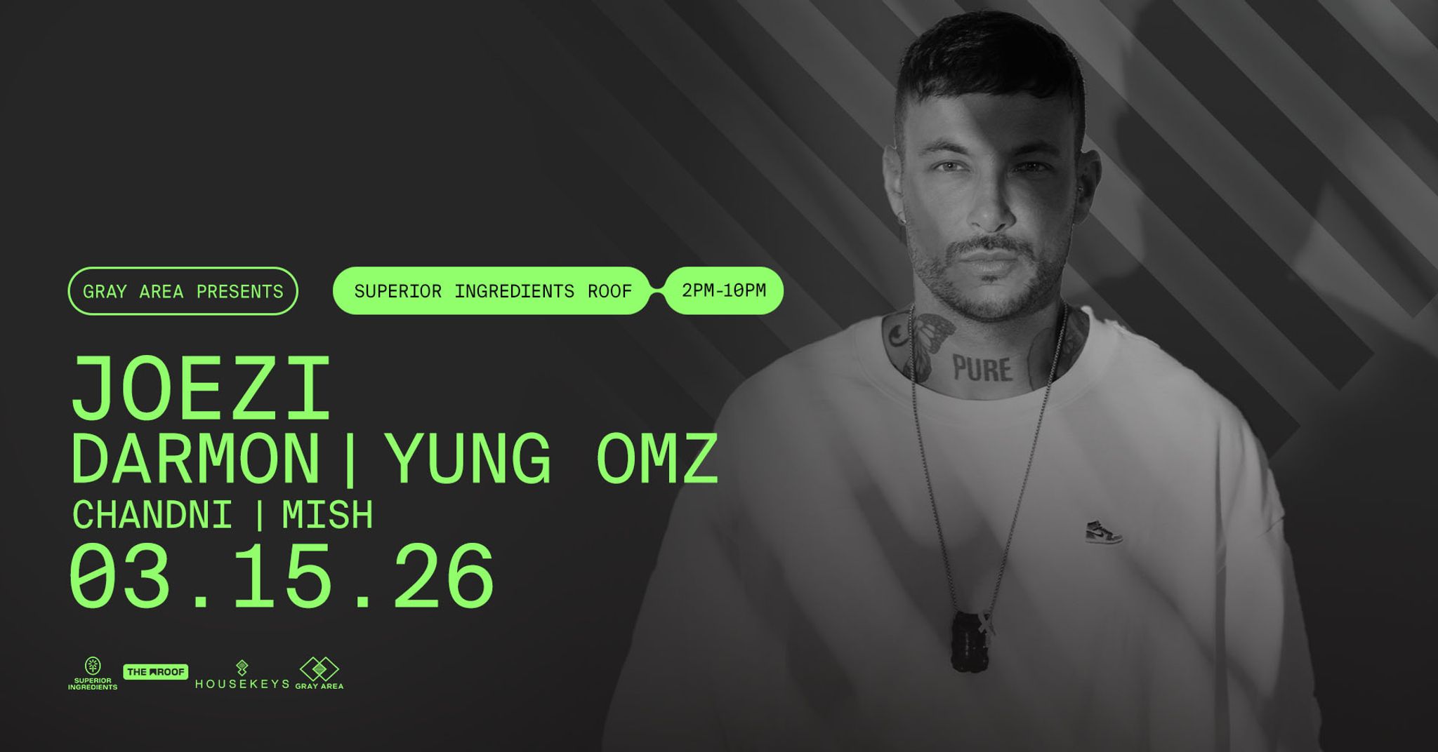 On March 15th, the Paris-born artist, Joezi, is coming to the rooftop of Superior Ingredients for a night of Afro-house under the New York skyline. He’ll be joined by special guest Yung Omz, a member of UK trio Mason Collective, bringing his own Afro-house project to the rooftop. The lineup also features Darmon, CHANDNI, and MISH.