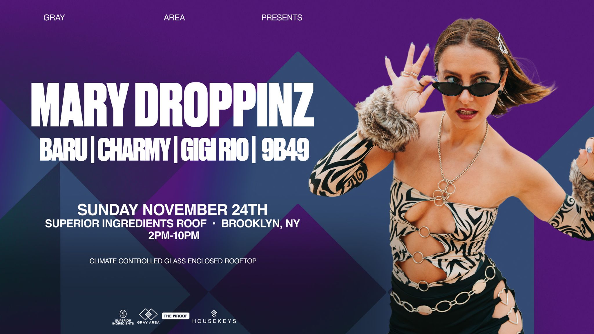Mary Droppinz is one of those artists who just can’t pick a genre—and the entire dance music industry is here for it. Her versatility and range of sounds have made her a valuable addition to every lineup. Now, it's time for her to bring that eclectic sound, spanning across breaks, bass, UK garage, electro, house, techno, acid, drum and bass, and hip-hop, to the Roof of Superior Ingredients on November 24th.