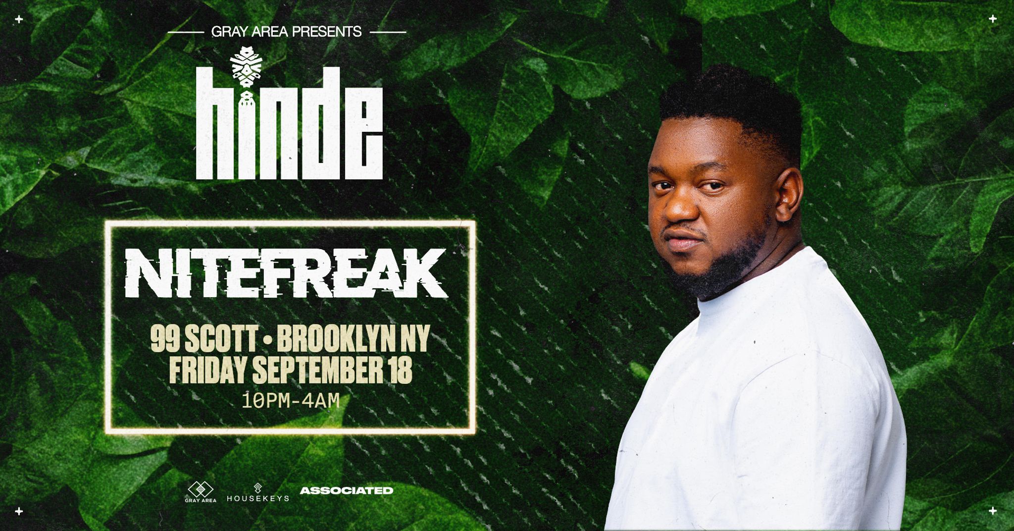 Nitefreak brings his HINDE label to Brooklyn for a rare New York appearance at 99 Scott, offering a closer look at one of Afro house’s most compelling rising artists. Originally from Zimbabwe, he began producing in 2009 and has steadily built a global presence, earning support from names like Black Coffee, Diplo, Shimza, and Keinemusik.