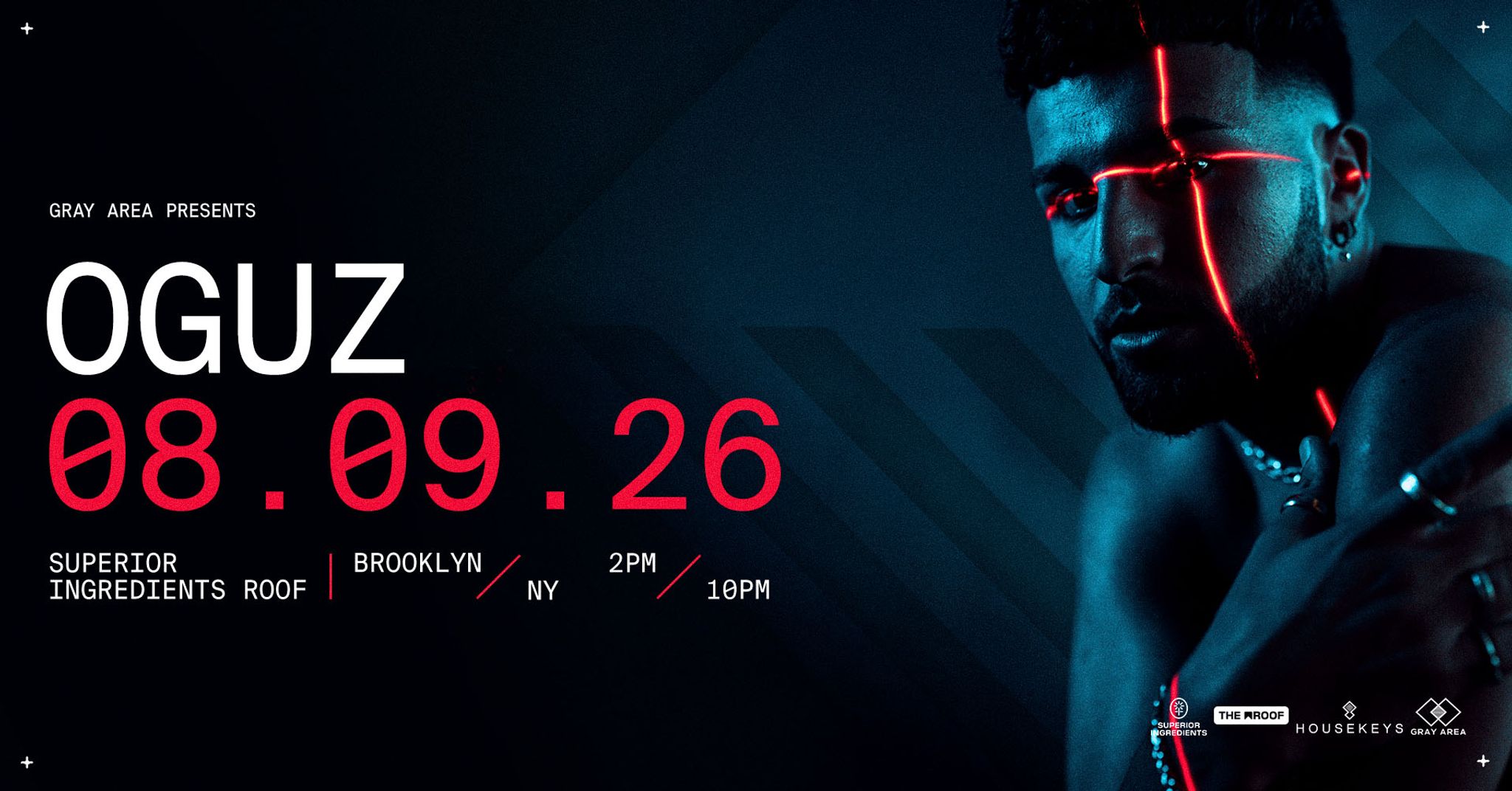 Gray Area brings OGUZ to Brooklyn for a special daytime-to-night rooftop session at Superior Ingredients on August 9th. Running from 2PM to 10PM, this open-air gathering places one of techno’s most in-demand young names against the skyline for an extended set built for both daylight energy and after-sunset intensity. Joining him is local talent, Mos.