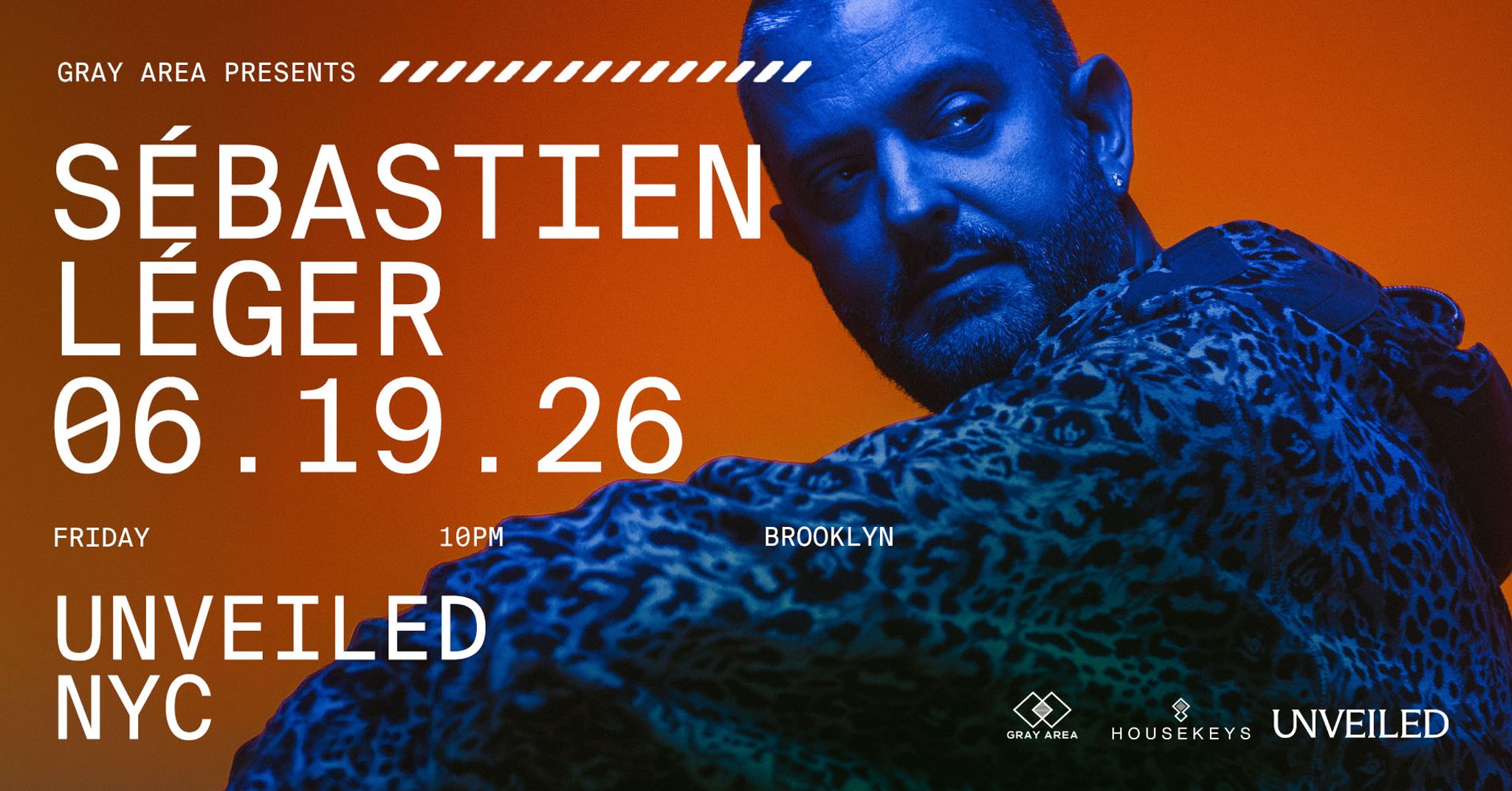 On Friday, June 19, 2026, Gray Area presents Sébastien Léger at UNVEILED NYC in Brooklyn.