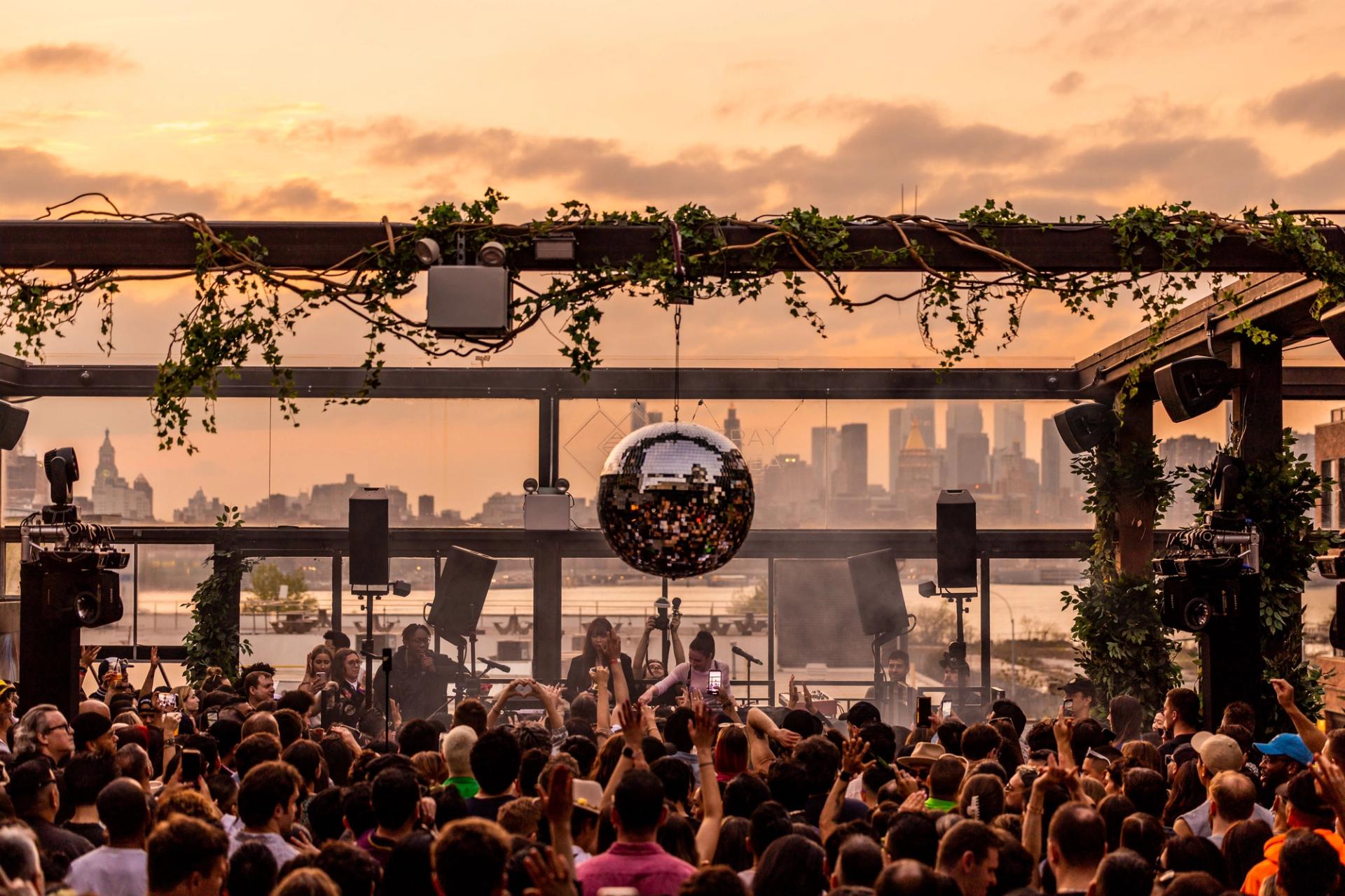 The Roof at Superior Ingredients in Brooklyn is a unique venue featuring a retractable climate controlled glass roof. Complemented by a state-of-the-art sound and lighting system, it offers stunning sunset views of the Manhattan skyline, making it one of New York's most attractive spots.