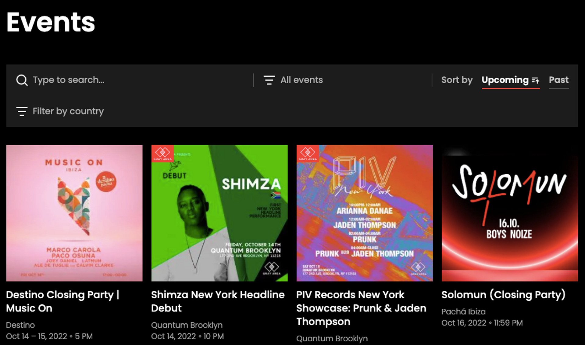 If you click on the “Events” tab of an artist page, (or at the very top of any page) you’ll notice that we here at Gray Area organize many of the gatherings in our searchable directory ourselves. Our team includes promoters with 25 years of experience in the dance music live event space. We especially take great pride in identifying which artists are most actively pushing the culture forward and giving you the opportunity to experience their music for yourself.