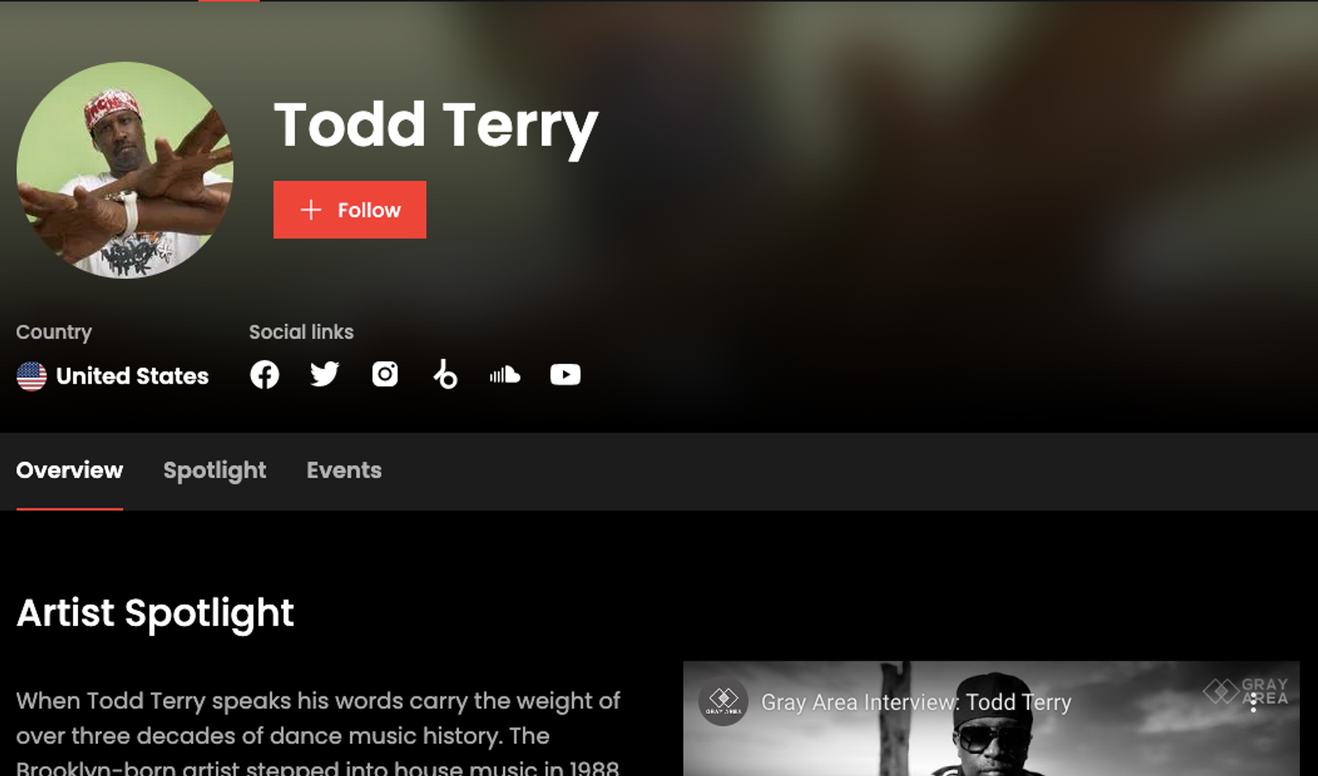 Gray Area's Artist page for Todd Terry