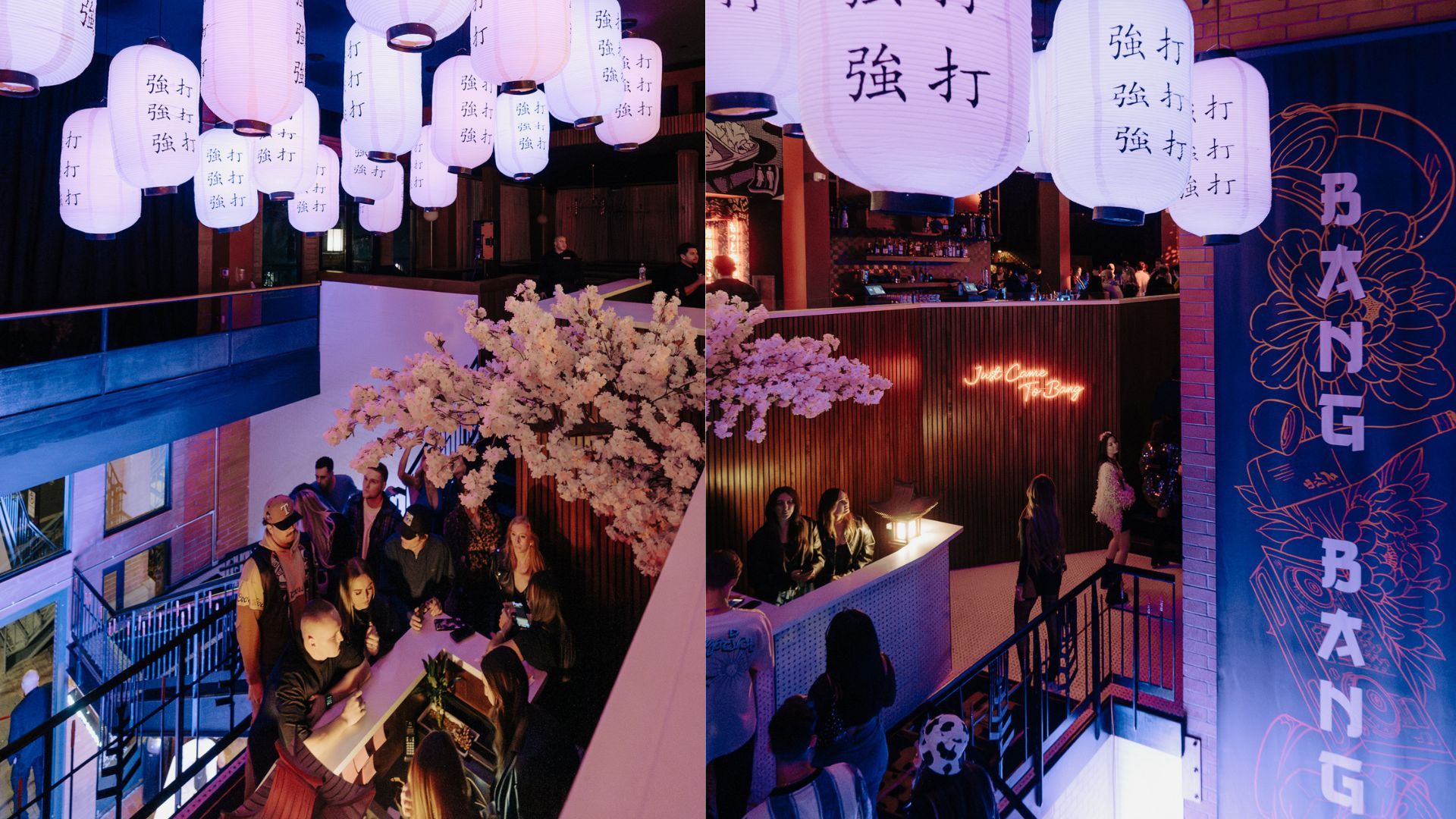 Bang Bang's interior is a visual spectacle. The Tokyo-themed subway station entrance sets an intriguing tone, leading into a space adorned with custom-made art and decor. From 90’s anime art on dining tables to nostalgic bathroom walls and lantern-lit ceilings, every detail is meticulously crafted to create a trendy and visually appealing environment.